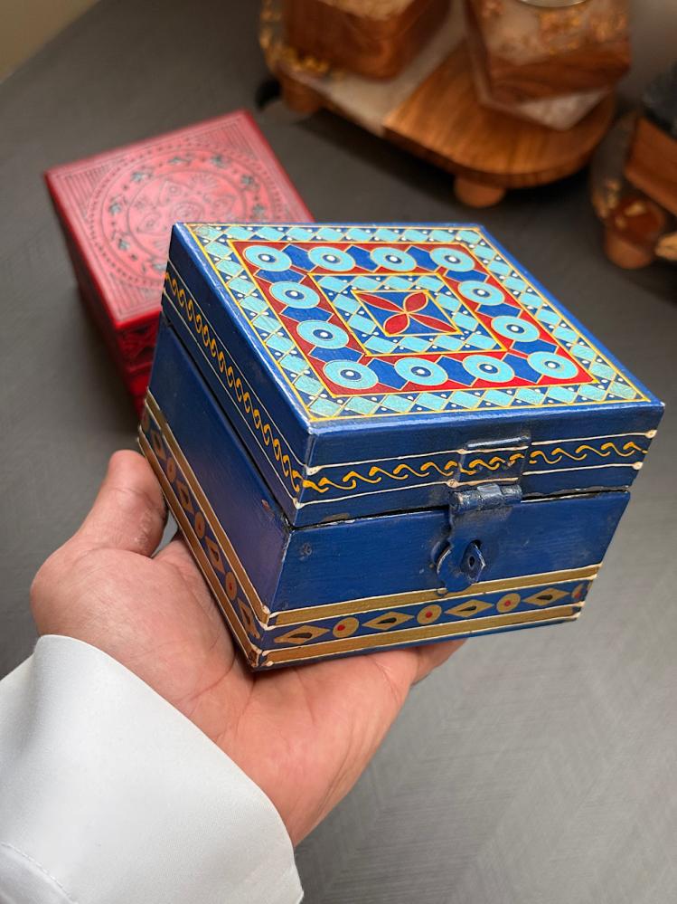 - الصندوق صناعة يدوية ولكن صمم على طراز الصناديق القديمة سابقا ماتأتي الا بالاشكال هذه !
